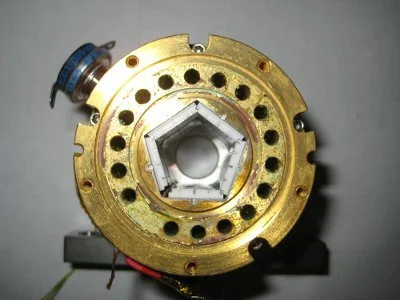 Pump laser diode donut. The laser crystal goes through the center hole. The holes around the center are for water cooling.